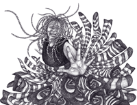 In May Your Life Be Easy, Samantha Modder combines allegory and fairytale to examine aspiration, power and interlocking systems of oppression through large-scale, digitally altered ballpoint pen drawings of Black women. Drawing its title from a blessing offered to her mother by a Nigerian village elder, the exhibition reflects on the tension between the imagined Global South and the promises of an equally imagined Global North. Inspired by Yoruba masquerade and Orisha dancers, Modder’s kinetic, storybook scenes use enchantment to confront privilege and the realities of capitalism.